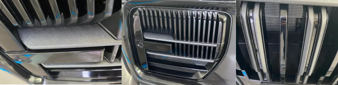 进气格栅上的饰条间隔搭配高光喷漆+哑光铁灰的配色。特别是这种哑光铁灰的处理效果,不光在格栅条上有运用,左右两侧的装饰圈、机盖下的装饰线、侧围装饰条、尾门装饰条上都能大面积看见,它的加入一改以往领克家族时尚+运动的外形风格,多了一份高级车的稳重。