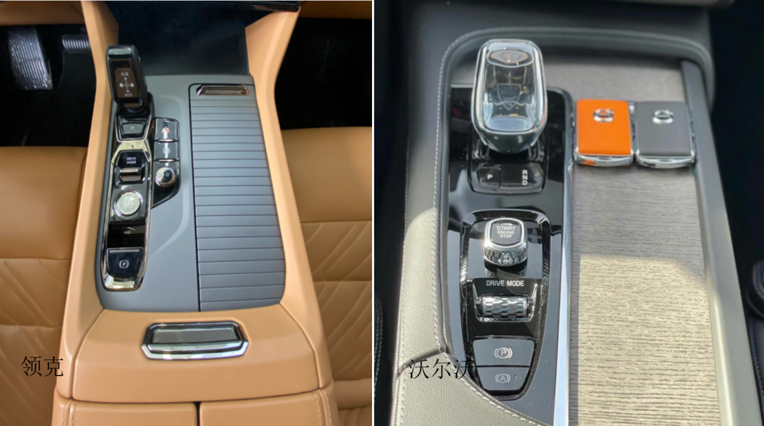 沃尔沃的内饰一直都是北欧极简主义,没有明显的亮点,而XC90作为沃尔沃销售价格较贵的车型,内饰风格也是平淡无奇,更适合成熟稳重的中年学术研究者,或古典艺术爱好者去喜爱。而领克一直都是以时尚和年轻两个概念作为市场定位,在09上自然没有办法去照搬沃尔沃的创意,所以在座舱内我们看到的是与沃尔沃完全不一样的风格。