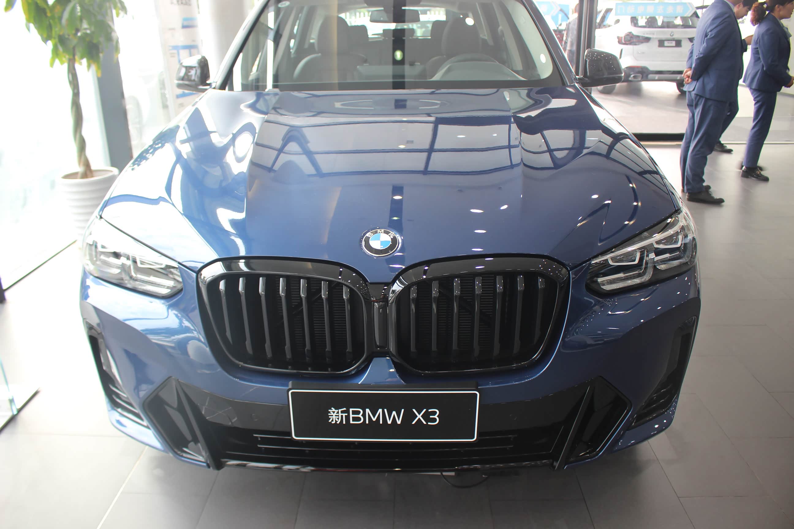 2022款宝马X3的外观设计的高级时尚,双肾式的进气格栅比较宽大,周边的线条描述的平顺修长,直瀑式的中网采用了熏黑的处理,前大灯组设计的棱角分明,内部透镜宽大扎实,点亮之后的视觉效果比较理想。两侧进气口的线条勾勒的突出有力,并且还装饰了亮黑色的饰条,中间的进气口宽大扎实,前脸的辨识度很高。
