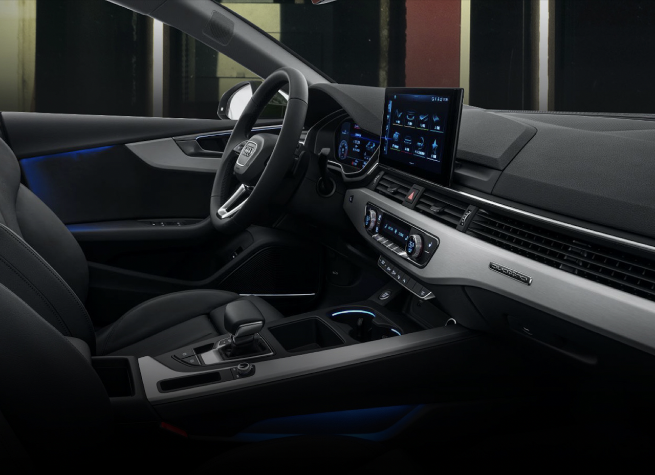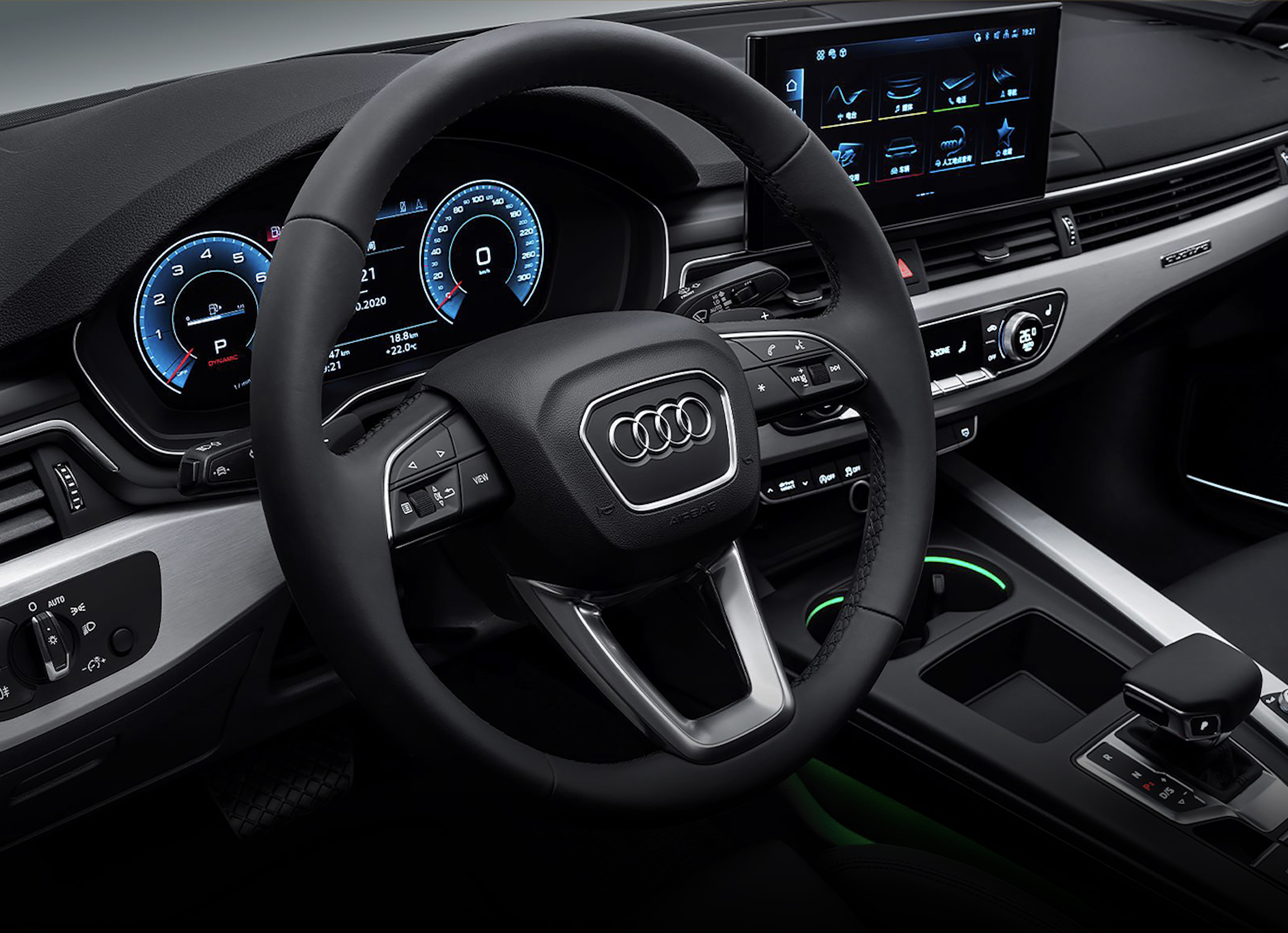 内饰方面,新车搭载12.3英寸大尺寸液晶仪表、10.1英寸MMI悬浮式触控中控屏,支持下载应用拓展以及无线CarPlay,真皮包裹的三幅式方向盘质感不俗,空调出风口为横贯式造型,前排并未采用过多的实体按键,座椅使用包裹感较强的真皮材质,可选装Alcantara(麂皮)座椅风格。内饰整体风格偏向简约便捷,却蕴含着严谨的德国工艺。