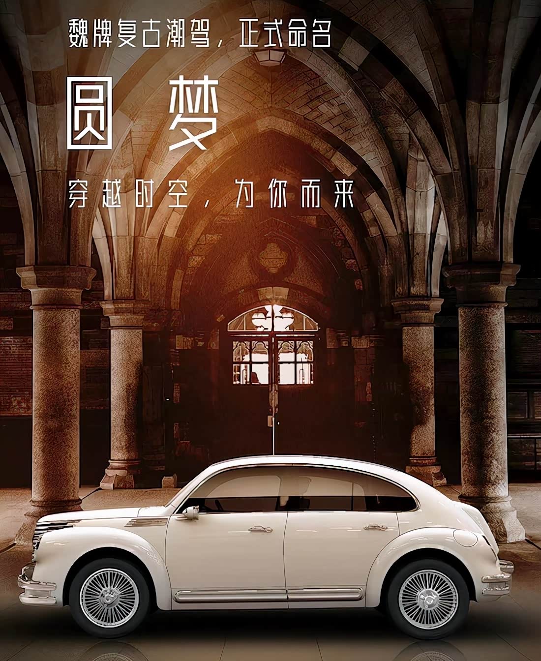 关注度爆棚的魏牌复古轿车的命名尘埃落定——圆梦。而随着命名的完成,它也将在本月的广州车展作为量产车正式亮相。