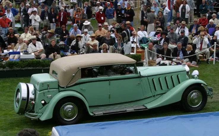 随着汽车在上世纪二三十年代的逐渐普及,挡泥板这一功能件开始被开发出更多的美学功能,从车头一直到车尾,并在发动机一侧增加外挂备胎,成为这一时期汽车设计的主流。从车头的位置看,这样两块被赋予了更多美学需求的前挡泥板,也就有了些展翅高飞的翅膀的样子。