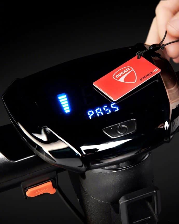 杜卡迪PRO-III还支持无钥匙启动,只要带着卡片钥匙靠近显示屏,就可以对其进行启 动。此外,通过杜卡迪Urban e-mobility APP还可以对车辆状态进行查看,并对一些功能进行OTA升级。