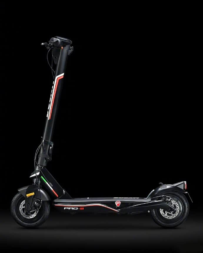 据外媒报道,日前杜卡迪发布了PRO-III电动滑板车。目前消费者可以在杜卡迪经销商处购买,同时可以在线上,如通过杜卡迪e-shop等渠道进行购买。这款电动滑板车售价为799欧元,买车时还会赠送一份一年期的家庭意外险。