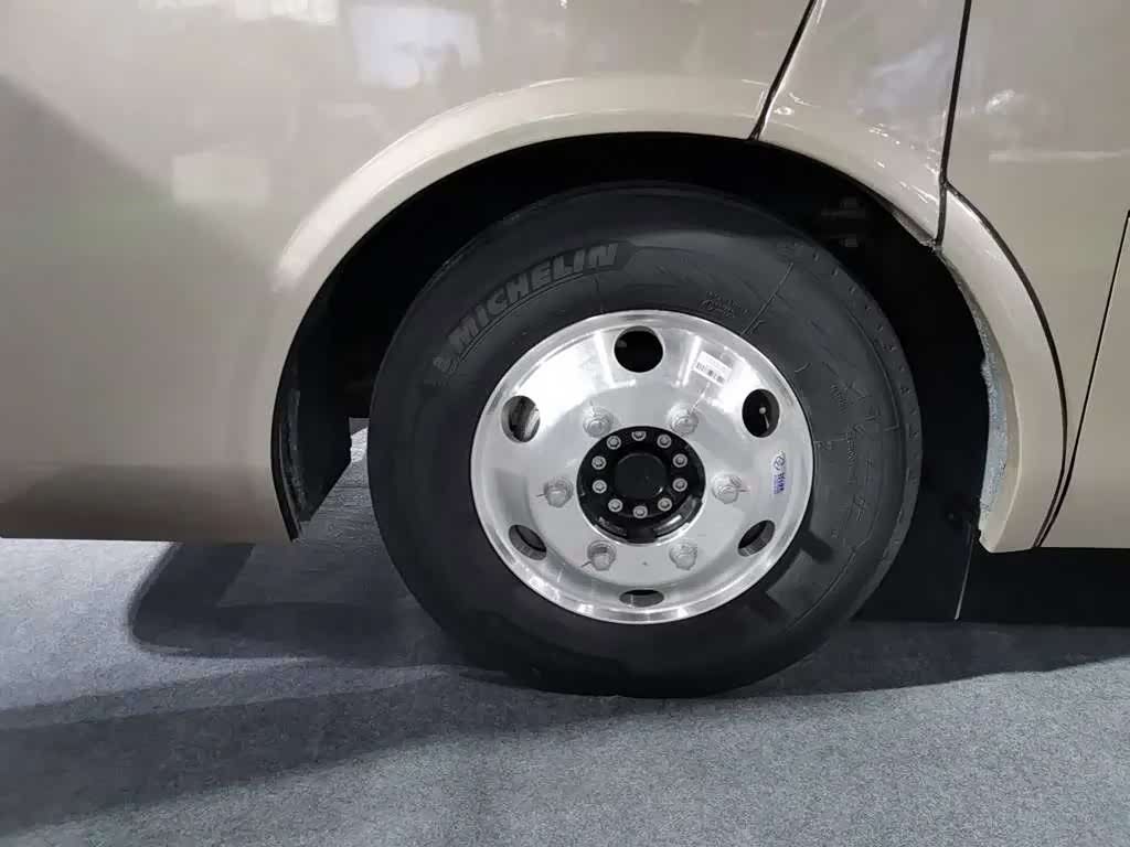 金色是商务中巴最常见的涂装,也是比亚迪C6的代表颜色,金光闪闪的商务中巴让人一看就有富丽堂皇之感。C6整车尺寸为7140 ×2060 ×2685mm,轴距3990mm,最大允许总质量9.4吨。车身尺寸适中比例协调,不会因为车身过长给人压迫感,也避免了日常用车中车身过长带来的不便。动力来自车桥上的TZ270XSE型电机,电机峰值功率110kW约150马力,最高车速100km/h,续航里程240km,不管是在城市日常使用,还是临时要跑高速都没有问题。动力电池系统额定电压460.8V,额定容量340Ah。采用120kW直流充电,充电时间只需1-1.5小时,即便是早上充电也不影响上午正常用车。