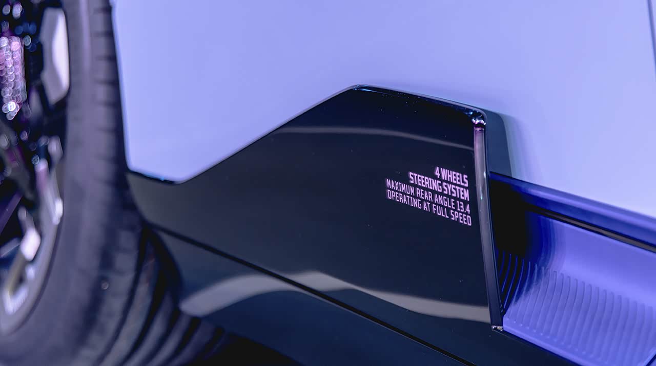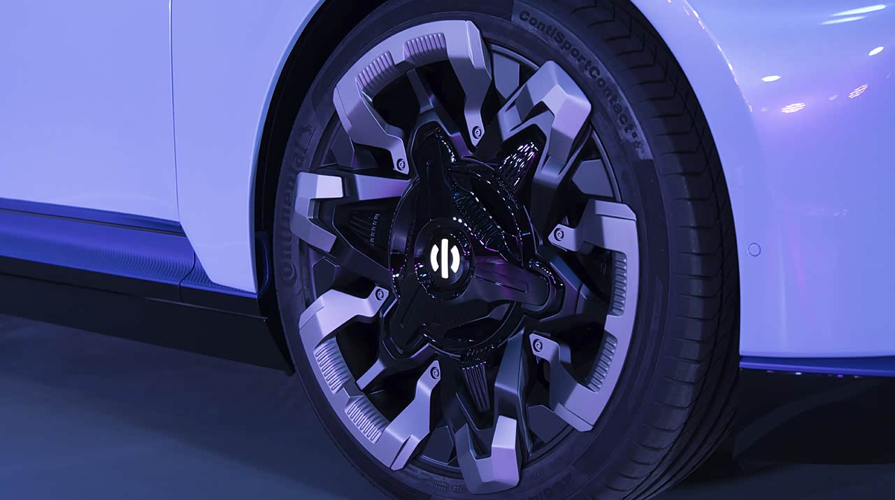 而在车轮部分,尺寸达到22英寸,实拍车辆装配的是来自马牌的CSC5轮胎,尺寸为255/45 R22。轮毂造型同样非常未来,并且轮毂上特有的软性橡胶车轮嵌件,在增强轮毂视觉冲击力的同时,保证轮毂不被刮花,毕竟22英寸的尺寸还是非常夸张的。此外,高合HiPhi Z还具备四轮转向能力,后轮转向角度为±6.7°,大大提升车辆转弯能力。