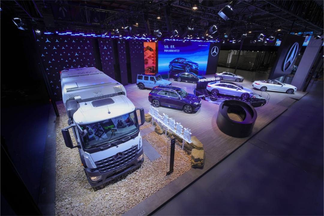 另一边的梅赛德斯-奔驰展台,不仅展出了包括全新EQS、GLE 350 e 4MATIC等七款乘用车,诠释着从“电动为先”加速转型为“全面电动”的品牌理念。