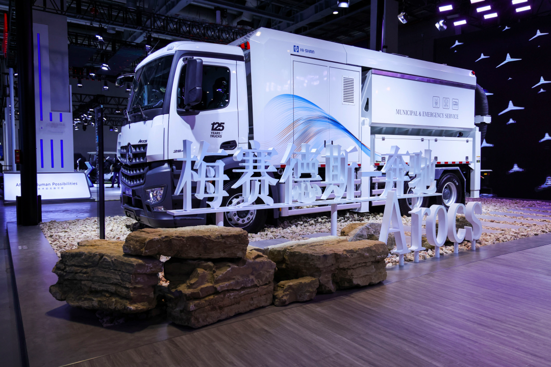 此外,展出的一款基于梅赛德斯-奔驰6x4卡车底盘Arocs打造的多功能应急救援卡车,该款卡车系挖掘抽吸车,可在市政工程及电力、消防、石油等众多行业进行重要作业。展现了戴姆勒在打造应用广泛、高度专业化的商用车方面的专业积淀,力求为客户带来卓越动力、可靠品质和出色效率的不懈追求。