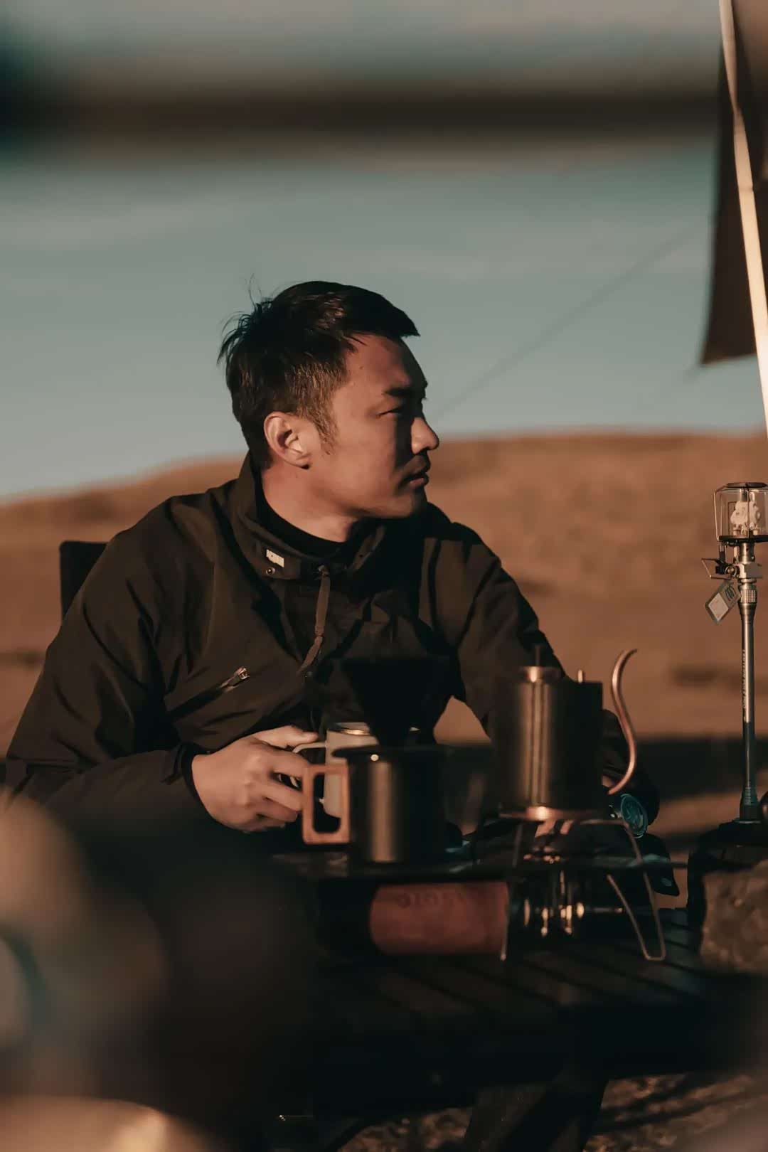 夕阳西下,由红到蓝的天光令人陶醉,篝火也烧的正旺。从火山脚下的小河里取来清水,煮一杯火山主题的咖啡,握在手里,享受温暖,也平复着刚才运动的心跳。