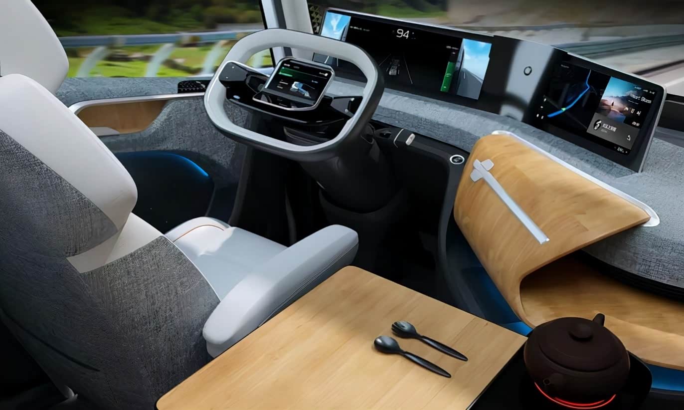 内饰方面,新车的整个座舱不仅设计了包括淋浴房、洗手间、超级单人床、冰箱、煮茶器等配置;在车门下方还外置了厨房和洗烘一体洗衣机,为卡车司机解决实际生活问题。另外,还配备了苍穹车顶,想要在夜间欣赏星光也完全可以实现。这里不得不说,虽然理想十分丰满,但是对于更多的卡车司机来说,能够有个舒适的地方睡上一觉可能更加实用一些。至于享受星光和品茶恐怕更多时候会成为车内的摆设吧。