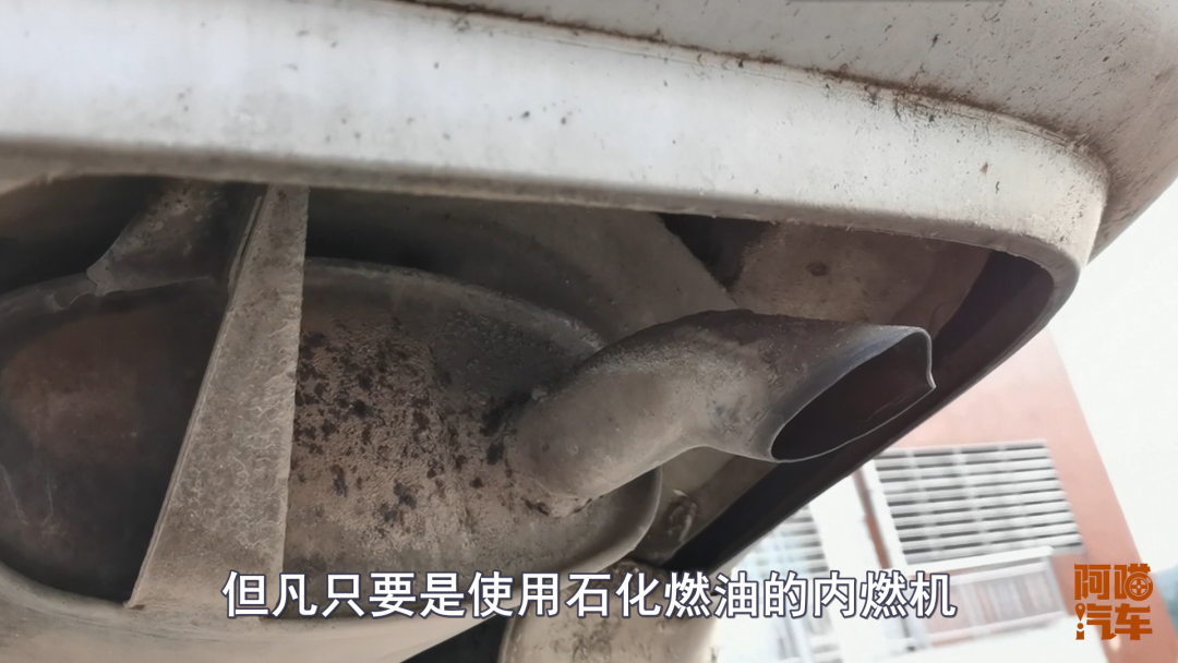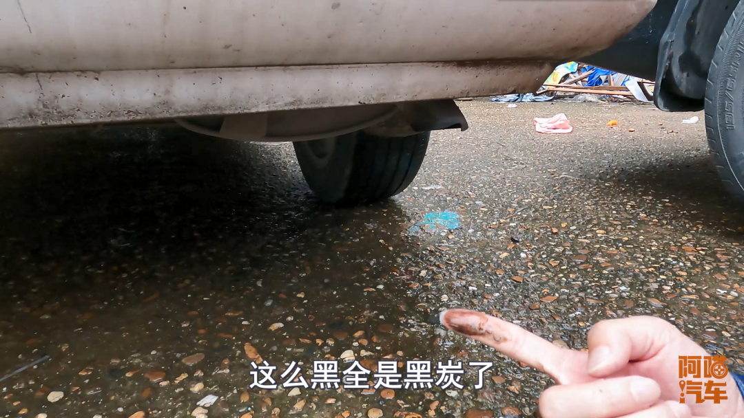 第三种情况,直接转到车子后面排气管在这个地方,然后再把手伸进排气管里面去,哎呀你的排气管里面这么黑,全是黑炭了,肯定是燃烧不充分,全是积碳,你发动机最多再跑5000公里,要是不清理积碳的话,里面就得冒煤烟出来了。