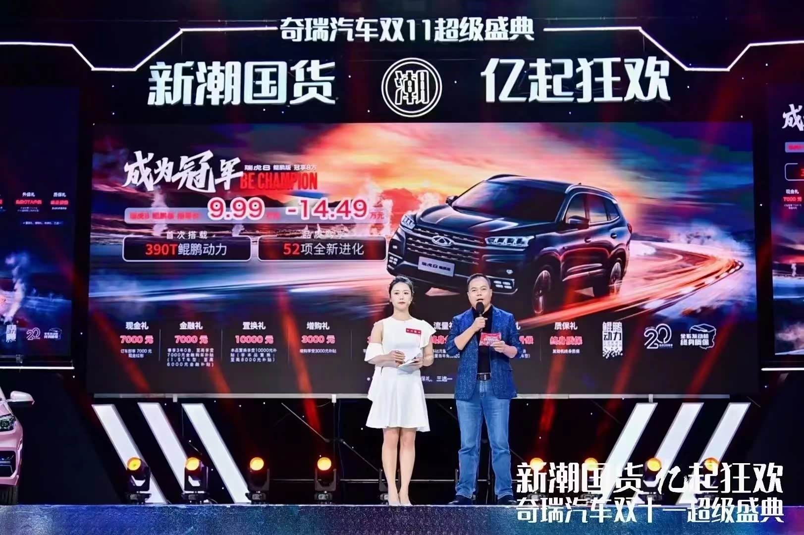 除此之外,还做了新潮国货亿起狂欢的双十一超级盛典活动,联合鸿星尔克、漫步者、汇源三大国货品牌,组成国潮CP 天团,奇瑞打造的“新潮国货亿起狂欢”超级盛典直播狂欢夜,实现全网销售额突破1.1亿,全平台观看人次3000万+,淘宝直播观看人次曝光165万+。