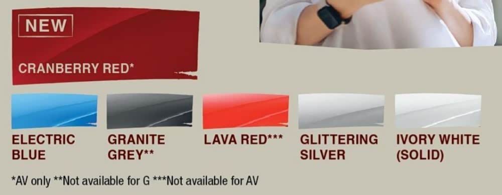 5. 车色 只有顶规版 AV 获得蔓越莓红新品色,另外还有象牙白、闪光银、熔岩红(不包括AV)、花岗岩灰和电光蓝。