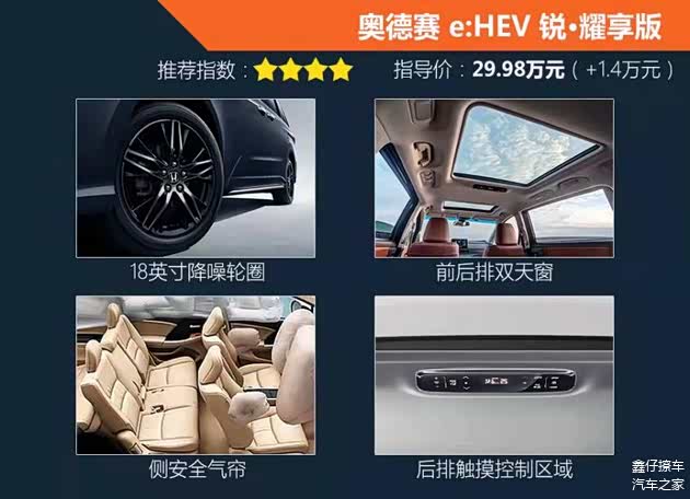 作为全系次顶配车型,锐·耀享版升级了18英寸轮圈、后排也加入了全景大天窗,同时后排温度、风量也可以进行单独调节,座椅升级为了航空座椅,对后排乘客的照顾可以说是更到位了。而对于全车乘员来说,最重要的一项升级就是增加了侧气帘,这对于侧向撞击的头部保护至关重要,不过这项如果能够全系标配才是最理想的。总而言之,如果你对后排舒适性要求较高,这款次顶配的锐·耀享版还是值得推荐的。
