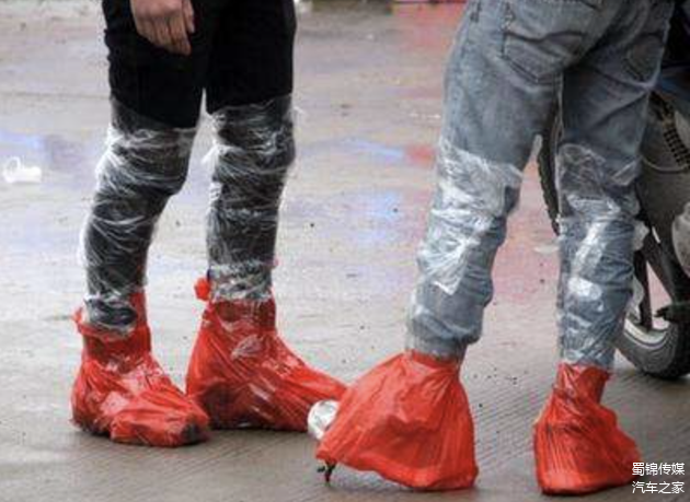 如果经济条件不允许购买全套骑行服饰,我们也有节省点的办法,可以选择一套能包裹颈部的冲锋衣,里面配上抓绒内衣,裤腿买一条长点的塞进鞋里。而骑行鞋可用靴子代替,鞋子外面套上塑料袋,鞋里垫上卫生巾,脚给裹上锡箔纸,这样一套下来也能满足摩旅需求。
