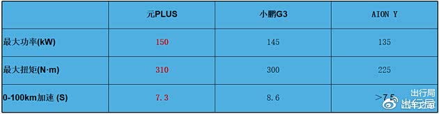 三款车型进行对比的车型均是最顶配车型,可以很清楚的看到元PLUS无论是最大功率还是最大扭矩抑或是0-100km加速上均优于小鹏G3和AION Y这两款车型。