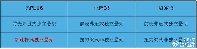 大家也都知道,无论你的底盘调校功力再好,多连杆式独立悬架对比扭力梁式悬架在操控和舒适性都要更强,就算是本田和标志也只是让扭力梁式悬架与多连杆式独立悬架的差距进一步缩小,因此在悬架上元PLUS对比小鹏G3和AION Y等竞品车型也是胜上一筹。