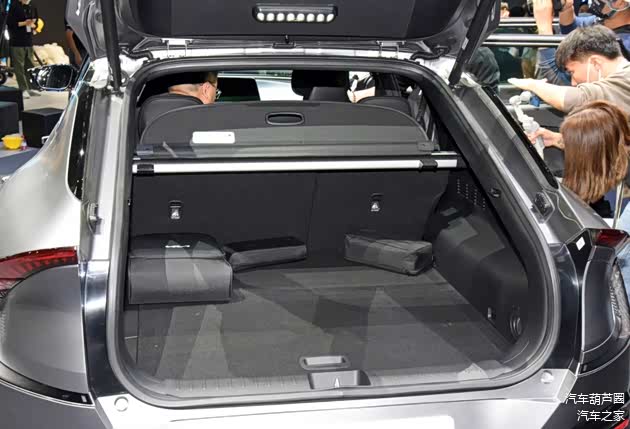 后备箱与车内头部空间,也表现不俗,虽然侧面看着是非常科幻未来的掀背跨界设计,但是车顶的下滑却几乎没有,后风挡玻璃的倾斜也是从D柱再往后,其车内实际的头部表现依然非常的“SUV”,远比轿车们表现要好;后备厢也是如此,虽然官方尚未公布具体数据,但是就实车的空间展现来说,已经是紧凑级SUV中的上乘水准,再加上纯电动车型特有的隐藏下部储物“坑”和前备厢加持,放置东西轻而易举。