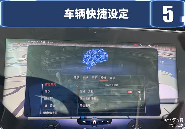 进入车辆的快捷设置菜单实施途径有三个,除了直接触控主界面“车辆设定”以外,通过屏幕下拉菜单或中央扶手的触控面板均可以实现。进入设置界面的二级菜单后,内部提供了辅助、车辆、照明、系统、信息五个板块,其亮点在于功能的丰富性,如果需要对具体功能进行调节或设置,需要进入三级菜单。不过,快捷设置的内部应用基本属于低频需求,不会影响整体的操作体验感。