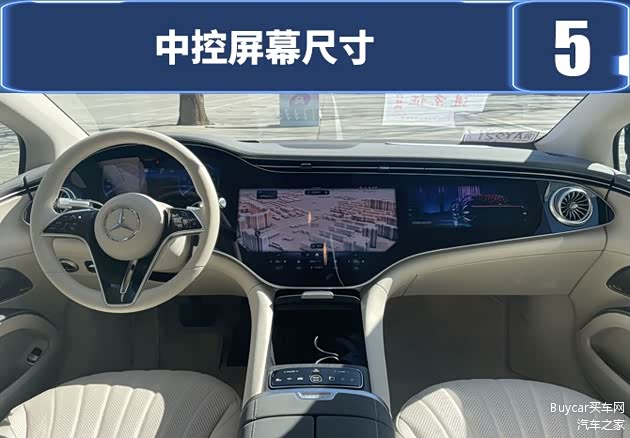 同样作为奔驰家族里的旗舰级车型,与久负盛名的S级不同,从驾驶角度来看,EQS更加注重驾驶者或前排乘客的体验。当大多数新势力车型还在中控屏尺寸上大下功夫时,EQS则创新性的采用了一块名为“MBUX Hyperscreen”的超级联屏,1.41米的宽度直接横贯整个中控台。
