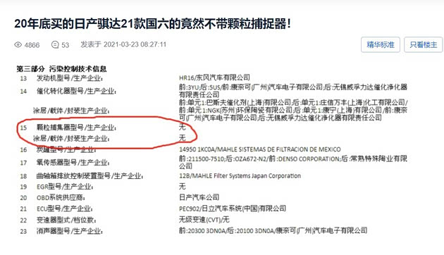 天籁包括2.0L和2.0T四缸版本,从2021款开始,均带有颗粒捕捉器,发动机整体的功率和扭矩也有所降低,安装位置为三元催化器与GPF耦合安装。
