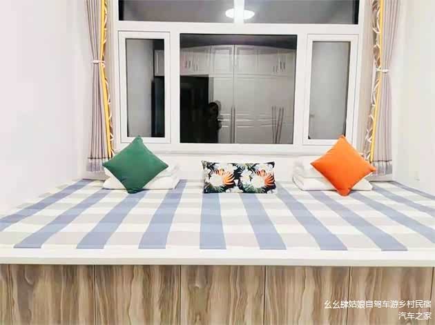 客房内各种各样的装饰品,可以看出屋主的用心,整个房间全部采用自然的材料,窗外是满满的绿色,床头的抱枕,窗帘乡村风布料,共同营造了这样温馨的氛围。