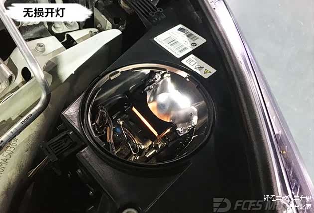 检测完灯光效果,开始对宝马X5进行施工了,此次宝马X5远光位激光大灯升级全程采用免拆杠、免拆灯、免开灯面工艺。那么免开灯改透镜最大的好处就是可以做到最大程度保留原厂大灯密封的完整性,改装就是要做到原汁原味是最好的。免去了烤灯、开灯、清胶等等一系列的繁杂工序。