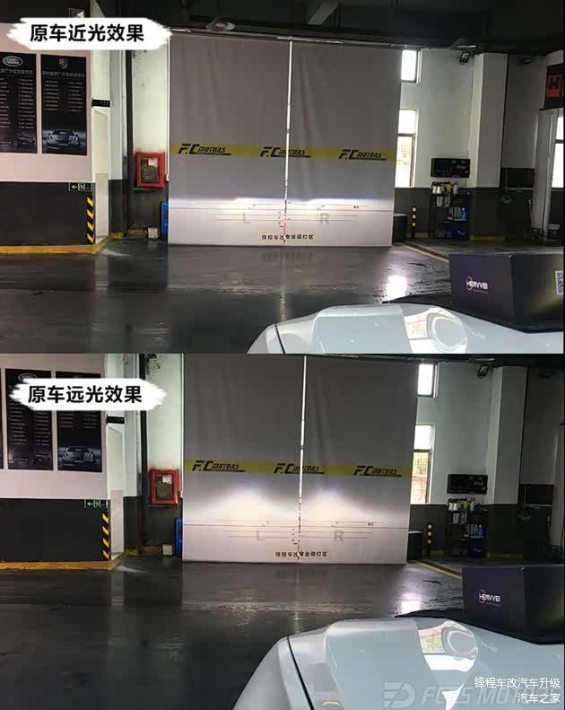 原车远近光的效果一眼便看出了它的不足之处,虽有明显切割线,但灯光暗黄亮度不佳,雨雾天穿透力差,即使打上远光也没有提升多少,照射范围窄,完全满足不了宝马SUV高大的车身。