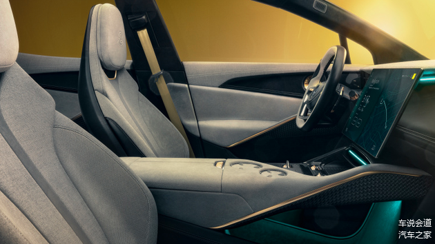 但从 Eletre开始,情况发生了改变。除了各项拉到顶的动力参数外(前后双电机的总输出会达到600马力,并且还在后桥电机旁匹配了两挡变速箱,以便于支撑超过200km/h的极速。0-100km/h的加速时间为2.95秒,0-200km/h的加速时间在12秒内),这台车的其它方面让人陌生,相比以前的路特斯车厢里那种随处可见裸露的车架,几乎没有内饰可言。而这辆路特斯的车厢里,一共有五块屏幕,主副驾前方各有一块细长的12.6英寸屏幕,中控有一块15.1英寸的大屏,后排中央扶手还有一块9英寸的屏幕,最后是投射面积达到29英寸的AR-HUD。其中,15.1英寸的中控大屏带有电动的收折机构,9英寸的后排扶手屏则是手动调节角度。
