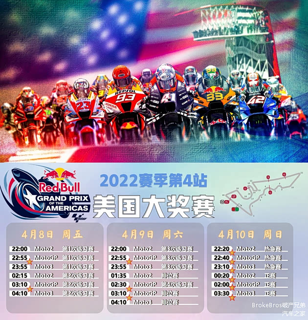 美国有四条赛道举办过MotoGP赛事,包括印第安纳波利斯、戴托纳、拉古纳塞卡和奥斯汀。奥斯汀是其中最新的一条,是美国在2007年告别F1之后,为了重返F1赛事而兴建的,从2012年开始承办F1,2013年开始承办MotoGP。马奎斯在奥斯汀举办的8届美国大奖赛中,拿到了7次杆位,7次冠军。他在2013到2018年连续6年统治了美国大奖赛,2019年在领先位置摔车退赛,2021年伤愈回归后再次夺冠。此外,他还在印第安纳波利斯和拉古纳塞卡赛道分别拿过3次和1次冠军,是当之无愧的“美国王”。奥斯汀赛道唯一旁落的冠军在19年被铃木的林斯拿走,而杜卡迪的巴格奈亚则在去年拿下了美国站的杆位。马奎斯在印尼站重摔导致复视症状复发之后缺席了阿根廷站,而他康复的好消息相信大家也已经知道了,他已经到达美国开始备赛了。