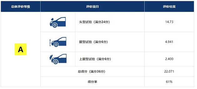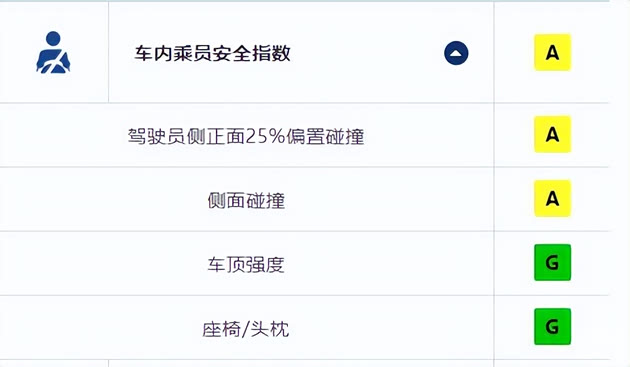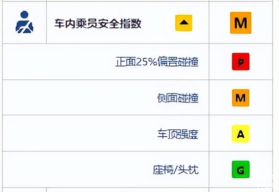 其中25%偏置碰撞从P较差提高到A良好,侧面碰撞从M一般提高到A良好,车顶强度从A良好提升到G优秀。