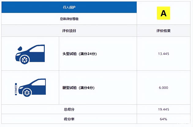 2022款在车外行人安全指数方面,别克GL8获得A良好,车外行人安全指数包括头型测试、腿型测试和上腿型测试。其中头型测试满分24分,别克GL8获得14.73分,腿型测试满分6分,GL8达到了4.941分,上腿型测试满分6分,GL8达到了2.4分。