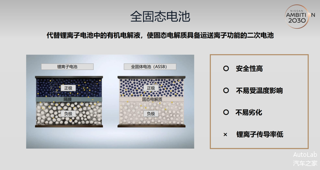 此次日产发布的固态电池,就是在固态电解质以及正负极材料上找到了一些突破。研究发现硫化物固态电解质对于离子拥有更高的传导性,而电解质固态化使材料间的副反应减少,扩大了正负极材料的选择范围,更容易增加负极材料的锂离子储存量,使能量密度最大化。