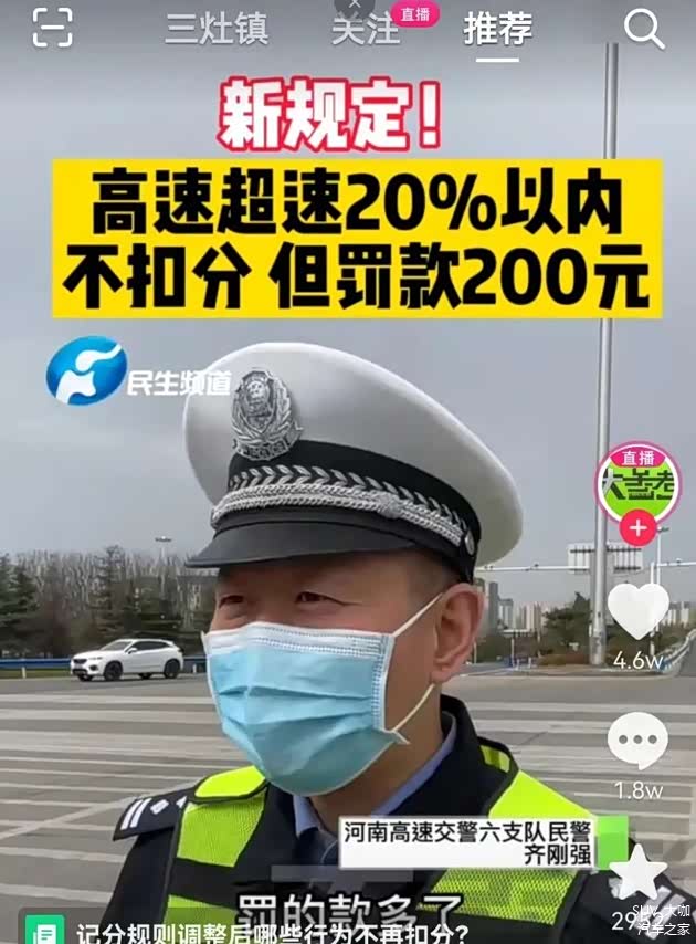 在过去的规定中,超速10%以内不扣分,超速10-20%都要记3分。而按照新的记分办法,4月1日起,超速20%以下则不会记分。无论是高速、城市快速道路还是普通道路,都适用这一规定。