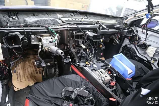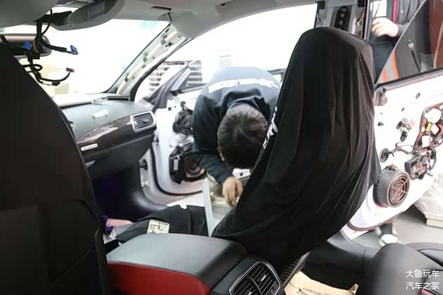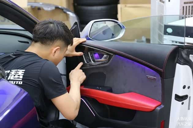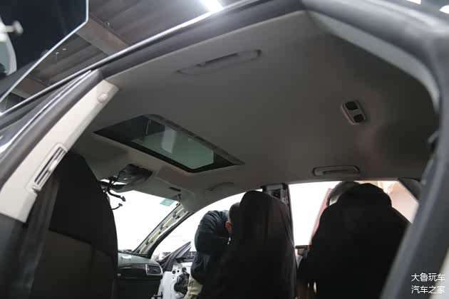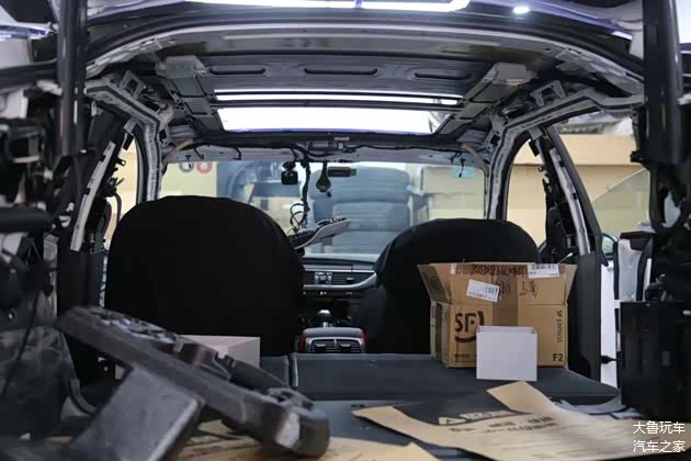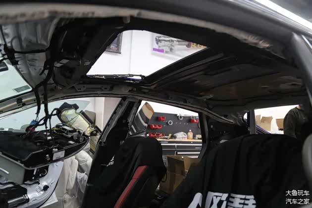 先把门板和顶棚拆下来翻毛皮包覆,一边安装上原厂的抬头显示。