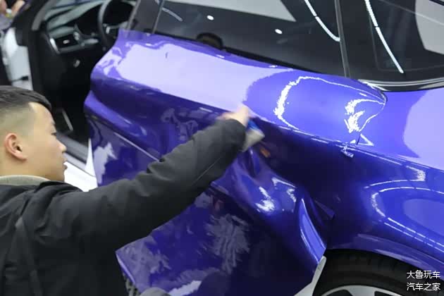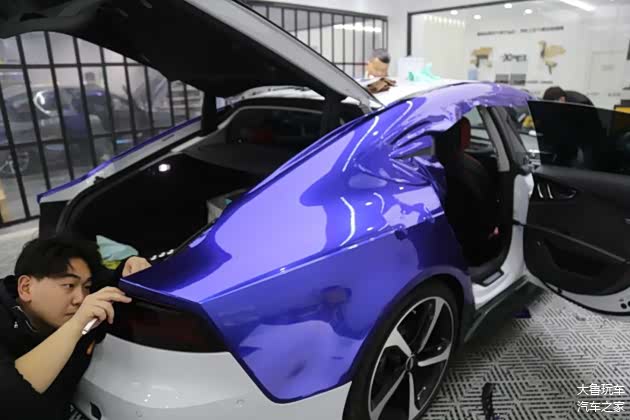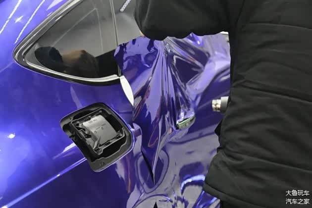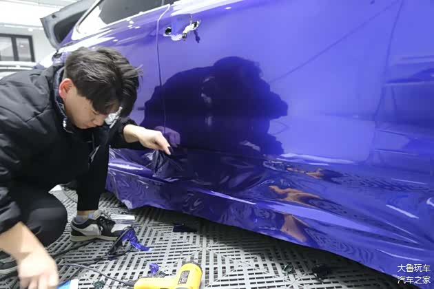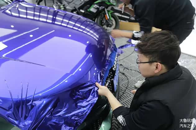 原车是白色的,车主之前贴的是翡翠绿的颜色,这次再换一个金属蓝莓的颜色,争取凑够七彩罒ω罒。
