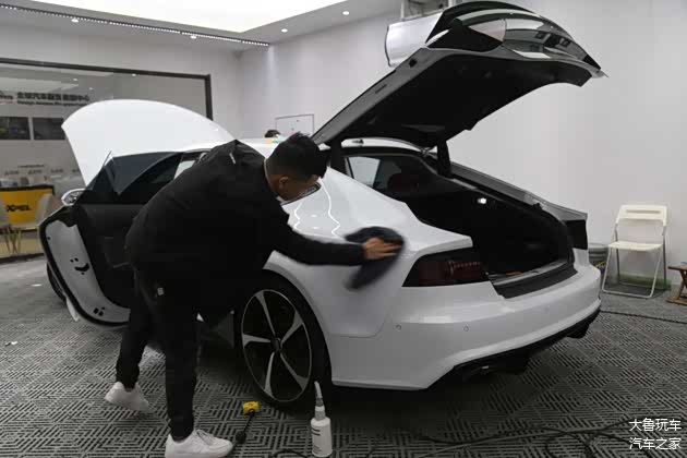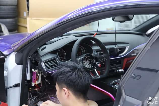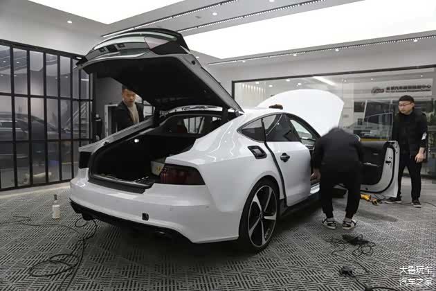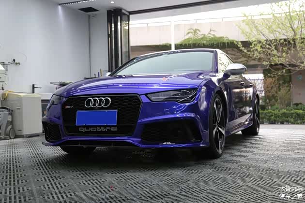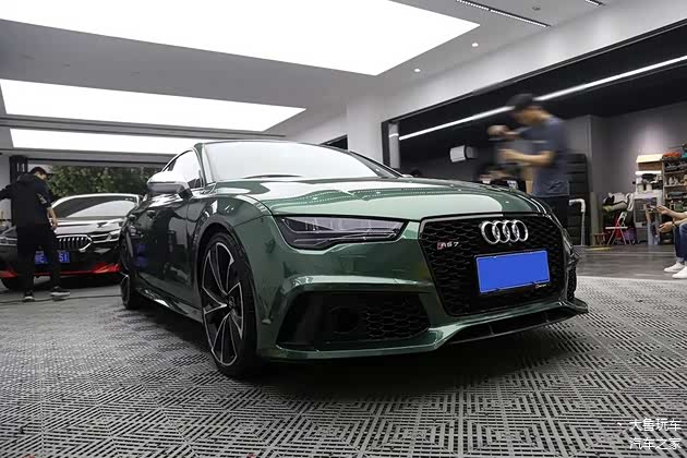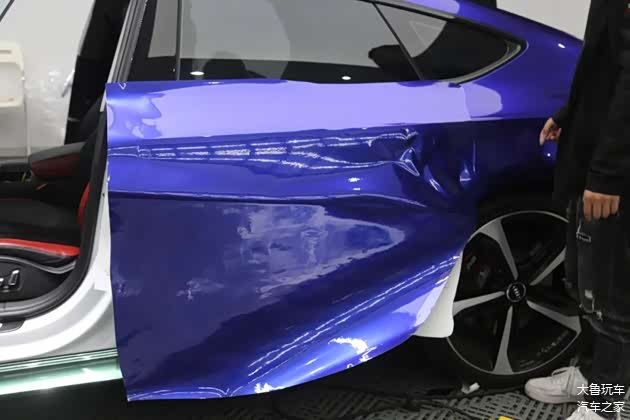改的比RS7还像RS7的奥迪A7车主,今天又来了!这台A7也是我们老客户的车,去年在这贴了个绿色的改色膜,开了一年看腻了,再来换个金属蓝莓色的改色膜。车主说一入改装深似海,根本停不下来,这次除了重新贴个改色膜还升级原厂抬头显示,内饰方面把车顶和门板都重新包覆成翻毛皮的。