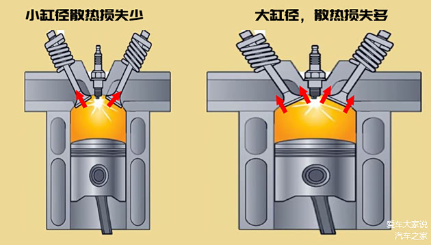 相反小缸径大冲程的发动机燃烧室表面积更小,散热损失更少,而且活塞行程长,可以充分利用混合气燃烧的膨胀压力,有助于提升热效率,使发动机更省油。另外长冲程需要更大的曲轴回转半径,有利于提升扭矩。而这一切都特别适合家用车的使用状况,因此现在家用车里几乎都是小缸径大冲程的发动机了。