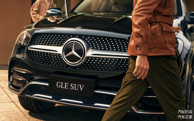奔驰GLE采用相对圆润优雅的车头设计,点阵式星辉进气格栅,飞翼式镀铬饰条贯穿整个中网,标志性的品牌Logo镶嵌其中,颇具辨识度。前大灯内部集成双L型日行灯带,点亮后视觉效果不俗。下包围部分经过熏黑,两侧通风口呈现出贯通形式,梯形前唇使用亮银色镀铬包裹,奢华而具动感。