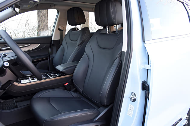 星途追风ET-i的座椅采用皮质包裹,顶配车型的主/副驾驶座椅均支持电动调节;后排座椅的材质与面料与前排座椅保持一致,不仅配有独立的中央扶手,而且还支持4/6比例放倒,空间更加灵活多变。