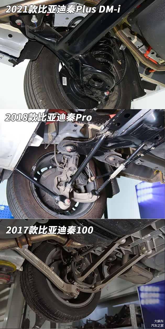 尽管秦Pro和秦100是棍状后悬,但好歹还是多连杆独立悬架,而这辆秦PLUS已经换成了扭力梁后悬,真是令人诧异。而且在用料方面,已经彻底放弃了铝合金。