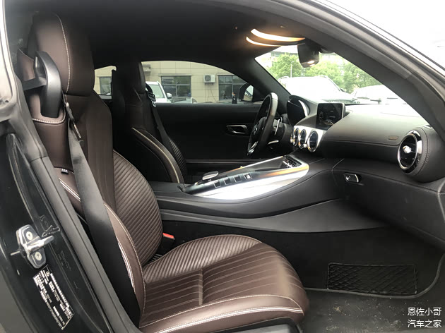 这台AMG GT标配的运动风格的座椅,但并不是特别“战斗”,没有Alcantara材质,都是全真皮。座椅配置还不错,主副驾都标配多向电动调节、带腰部支撑,加热,记忆功能。