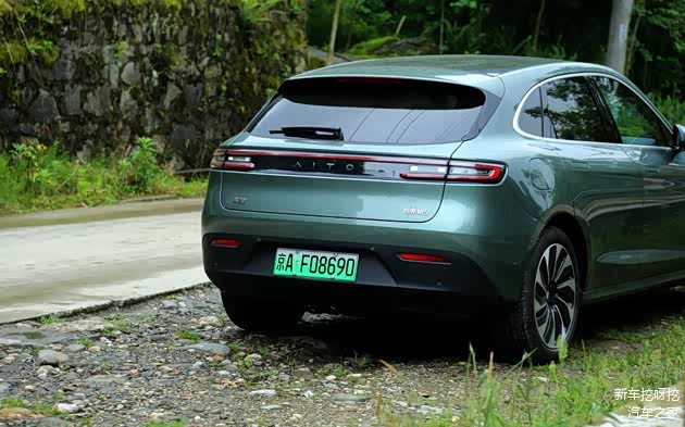 侧面造型稳重不失豪华,功能与颜值完美平衡,彰显现代动感豪华美学,采用双平行线设计的鹰翼贯穿式尾灯,下层尾灯做了留白,保留视觉的呼吸感,中央采用全新的“AITO”字标具有极高的辨识度。与流线型车身线条相对应,达到极强的品牌辨识度,车尾的灵动风格设计,简单平直的线条刻画出豪华车的精神内核。