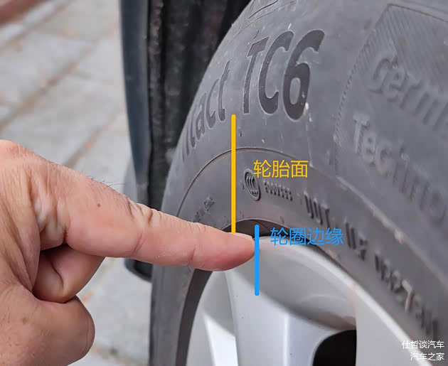 ▼ 我自家车上带 FR 轮辋保护的马牌 TC6,可以看到轮胎面明显高于轮圈边缘一截,蹭过几次马路牙子,都没刮到轮圈。