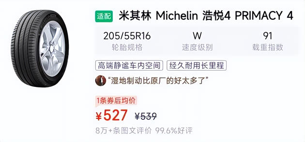 顶级品牌米其林的顶级舒适胎,静音、操控双开花,价格虽贵也不算离谱。