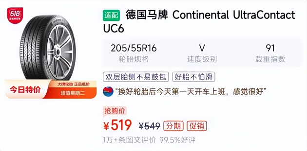 这里说说为什么没有推荐口碑很好的UC6,UC6相对TC6更偏操控性,安静程度和TC6区别不大,耐磨指数较低,适合行驶里程较少的车主,但这里有一个问题,UC6价格比较贵!
