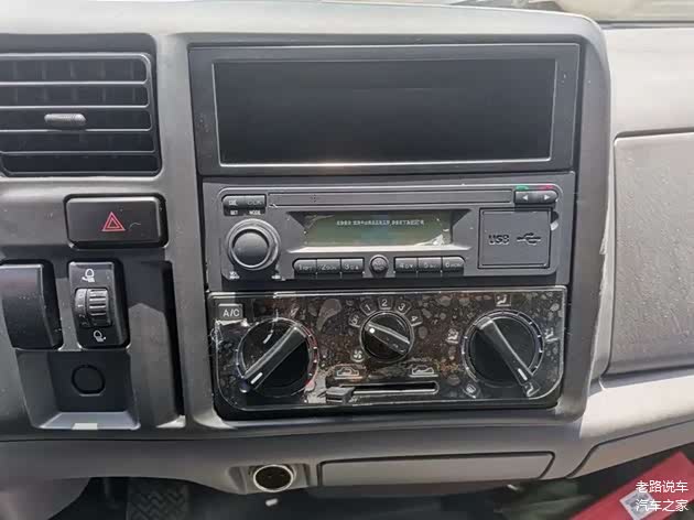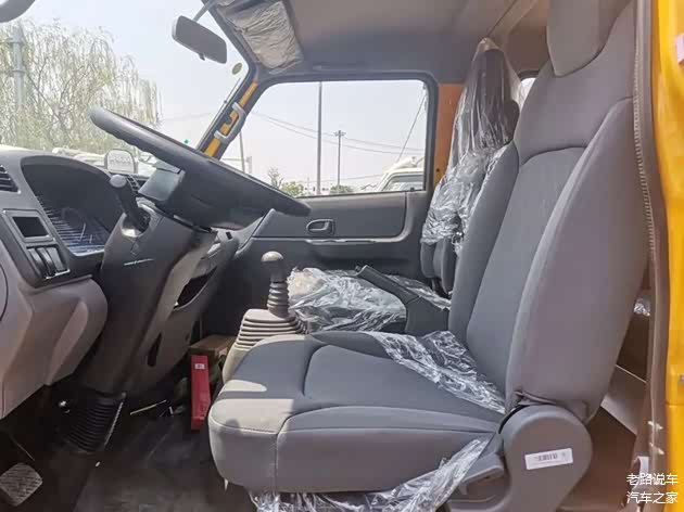 车上使用的是白色指针的机械仪表,左侧是转速表和水温表,右侧是车速里程表和油表。驾驶员右侧的中控台设有储物槽和收音机,收音机下方是空调面板,底部设有点烟器和储物槽。驾驶室空间宽敞,不仅储物空间多,也能给车上的驾乘人员提供一个舒适的工作环境。出去工作的时候能有一辆这样宽敞安全的车,一路上也能拥有好的心情。