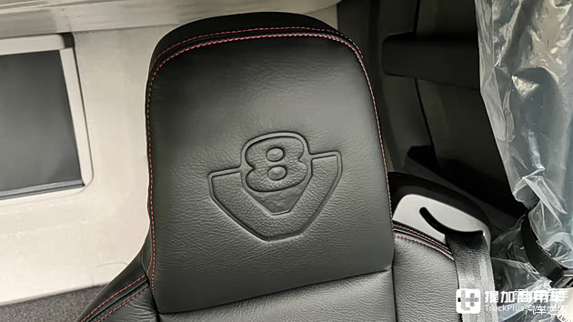 头枕上带有V8式样的LOGO,进一步突出其V8发动机的尊贵身份。
