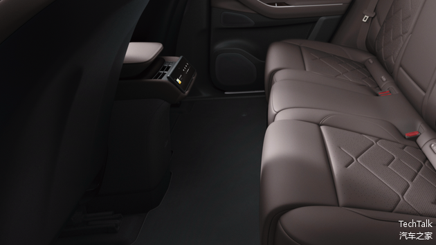 即使将前排座椅调整到最低坐姿处,座椅下方留有的空间仍为第二排乘客的脚部留出了自由活动的空间,确保前后排用户都可以随心调整自己的坐姿。除了为第二排中间座位提供了纯平地板,我们还尽量将后排屏幕下方的位置掏空,为后排的脚部位置营造更加开阔空间。