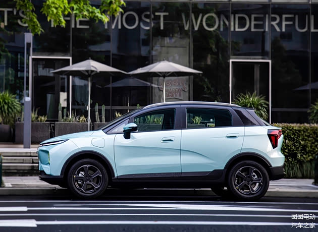 几何E的车身侧面也运用了许多凌厉的线条,车头低、车尾高,整体的车身呈俯冲状。双色车身设计也有不错的时尚感。同时我们也可以看到几何E采用了固定式的低风阻门把手,相比隐藏式门把手使用更便捷。轮圈将搭载银灰色螺旋桨式五辐低风阻轮圈,尺寸为205/60 R16。车身尺寸方面,新车的长宽高分别为4006/1765/1550mm,轴距为2485mm。
